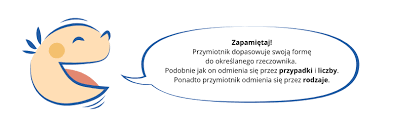 - określa rodzaj rzeczownika i przymiotnika;
